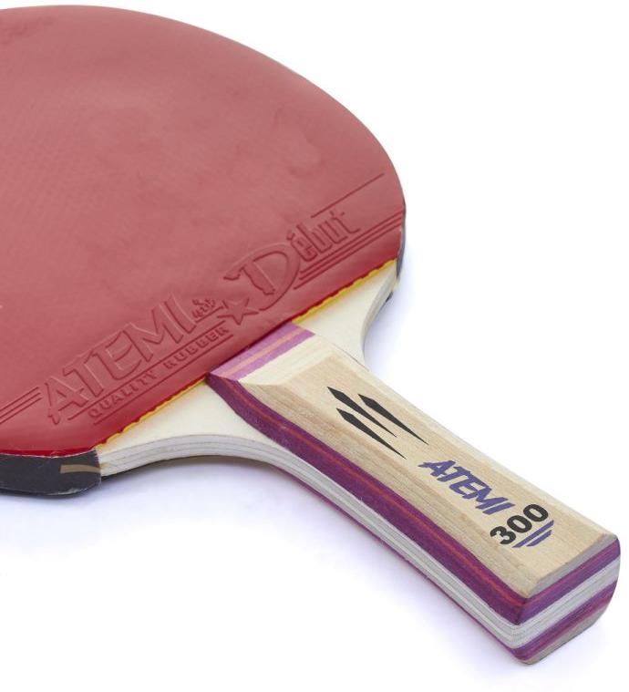 В ракетке Atemi 300 используются накладки Debut, толщина губки 1,3 мм, одобренные международной федерацией настольного тенниса (ITTF). Обеспечивается отличный контроль мяча.